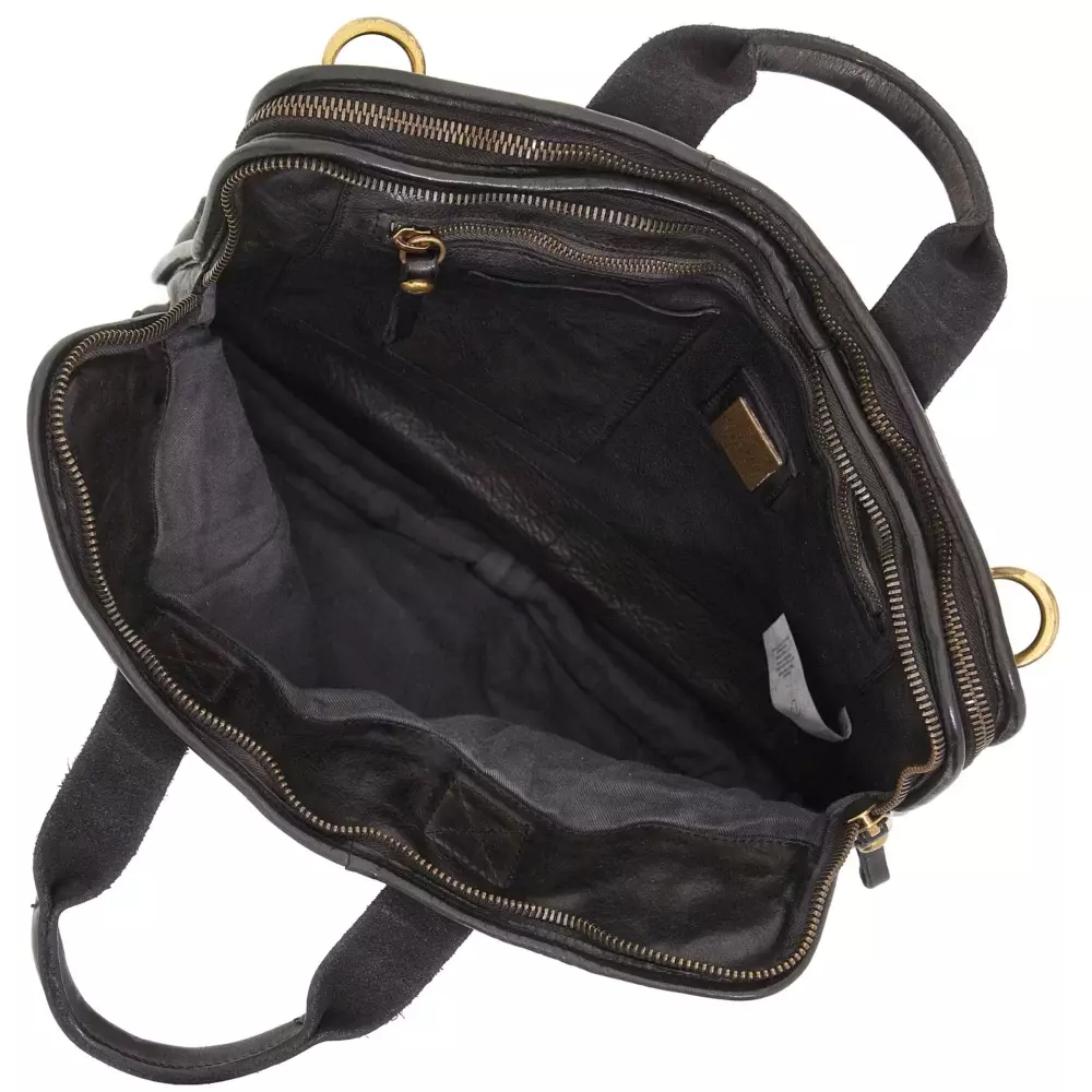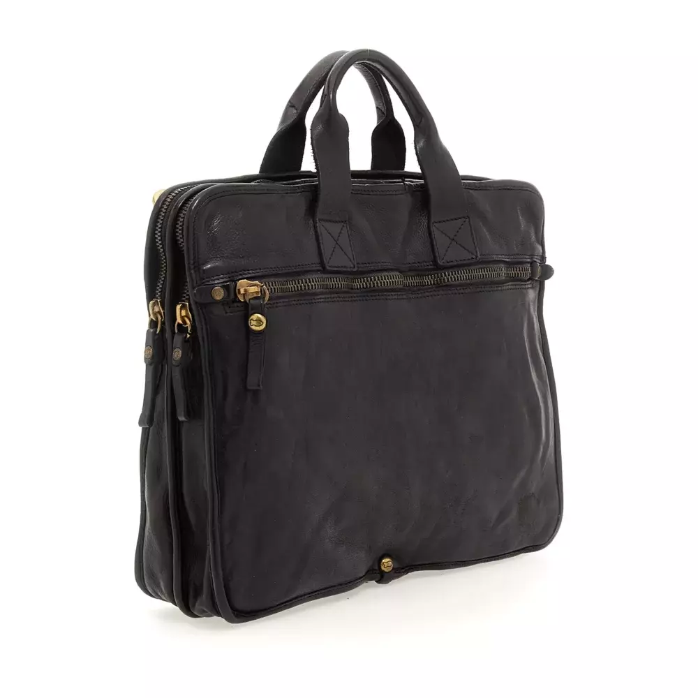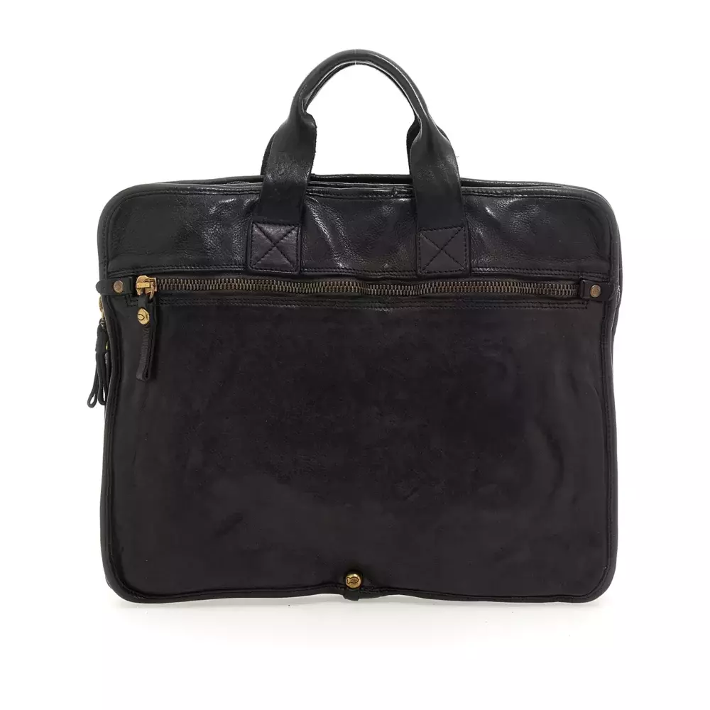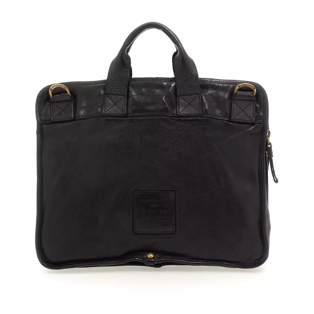 Элегантная рабочая сумка состоит из двух внутренних отделений. Снаружи спереди у нее есть удобный карман на молнии. В комплекте съемный и регулируемый плечевой ремень. Изготовлена из натуральной коровьей кожи, окрашенной для одежды. Хлопковый мешок для пыли и набор кремов для ухода входят в комплект. Сделано в Италии.